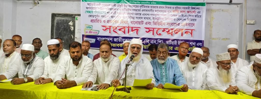 সংবাদ সম্মেলনে লিখিত বক্তব্য পাঠ করেন, ভাটিয়ারী হাজী তোবারক আলী চৌধুরী উচ্চ বিদ্যালয়ের পরিচালনা কমিটির সাবেক সভাপতি ইমরোজ সেলিম। লিখিত বক্তব্যে জানা যায়, সীতাকুন্ডের ভাটিয়ারী হাজী তোবারক আলী চৌধুরী উচ্চ বিদ্যালয়ের দূর্নীতিবাজ ভারপ্রাপ্ত প্রধান শিক্ষক ও দু’জন সহকারী শিক্ষকের অপসারণের দাবীতে বিদ্যালয়ের ছাত্রদের অভিভাবকবৃন্দ ও ভাটিয়ারীর সর্বস্তরের এলাকাবাসীর আন্দোলনে কান্তি লাল আচার্য্য স্বেচ্ছায় পদত্যাগ করেন। উক্ত বিষয়ে একটি স্বার্থনৈষী মহল বিএনপিকে জড়িয়ে জোরপূর্বক পদত্যাগ আখ্যায়িত করে বিভিন্ন মিডিয়ায় সংবাদ প্রকাশিত হয়। যা মিথ্যা বানোয়াট ও উদ্দেশ্য প্রণোদিত।