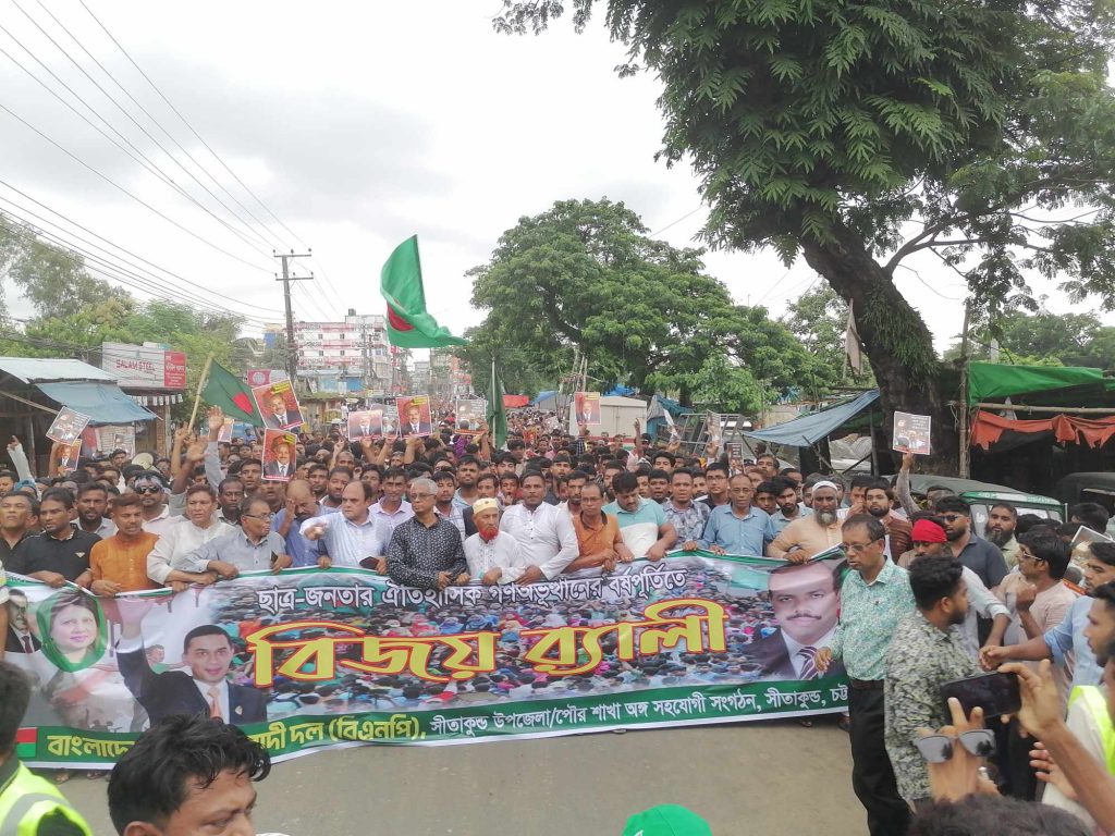 বিকাল ৪টায় সীতাকুণ্ড উপজেলা বিএনপির উদ্যোগে পৌরসভা চত্বরে সমাবেশ ও বিজয় র্যালী অনুষ্ঠিত হয়েছে। র্যালীটি পৌরসদরের ডিটি রোড প্রদক্ষিণ করে উত্তর বাজারে গিয়ে শেষ হয়।